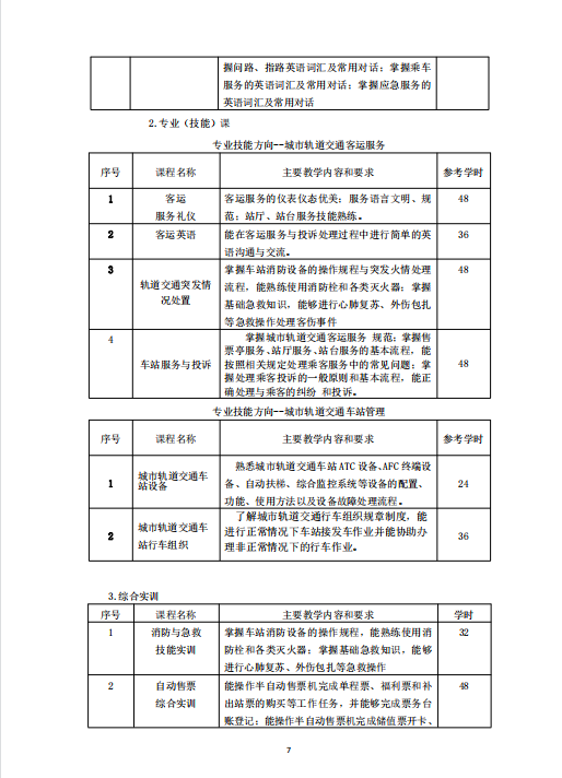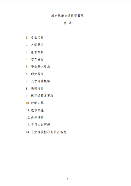 城市軌道交通運營管理專業 (升學方向)人才培養方案
